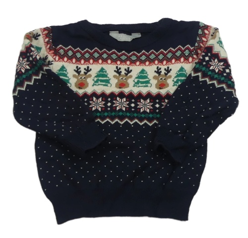 Tmavomodro-béžový sveter so vzorom a sobmi Primark