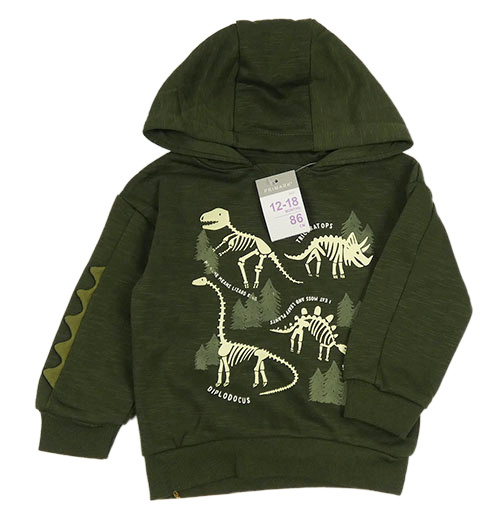 Nová - khaki melírovaná mikina s kostrami dinosaurů a ostny a kapucňou PRIMARK