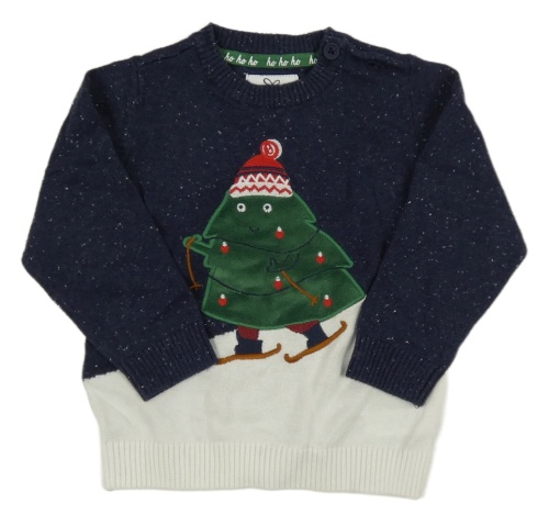 Tmavomodro-biely melírovaný sveter so stromkem C&A