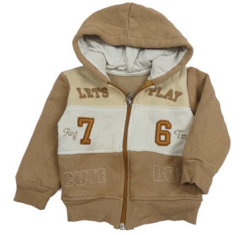 Béžovo-hnedo-biela prepínaci mikina s číslom a kapucňou