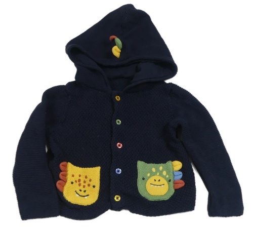 Tmavomodrý prepínaci sveter s vreckami s dinosaurami a kapucňou Tu