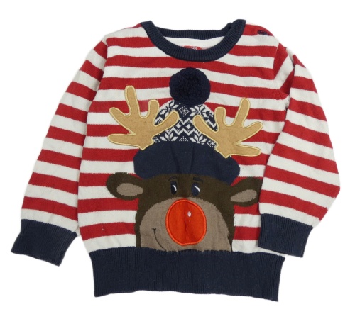Červeno-biely pruhovaný sveter so sobom Rebel