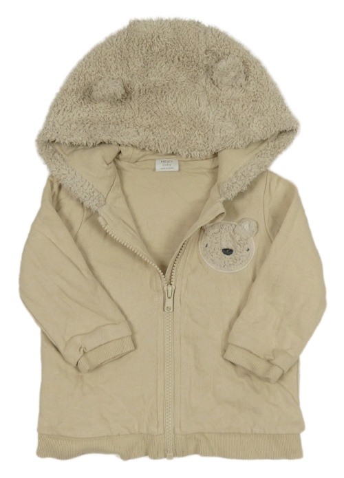 Béžová prepínaci mikina s medvedíkom a chlpatou kapucňou Next