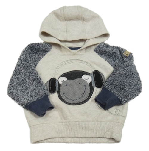Svetlošedá -tmavomodrá melírovaná teplákovo/chlupatá mikina s opicou a kapucňou Next