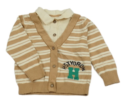Béžoo-smotanový pruhovaný prepínaci sveter s vsadkou a písmenem
