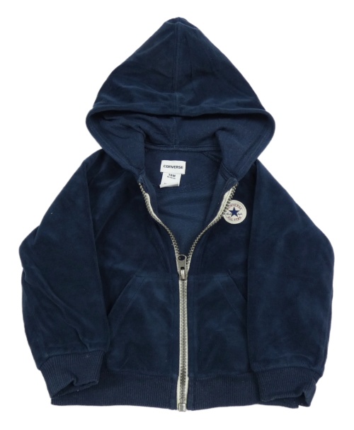 Tmavomodrá prepínaci zamatová mikina s logom a kapucňou Converse
