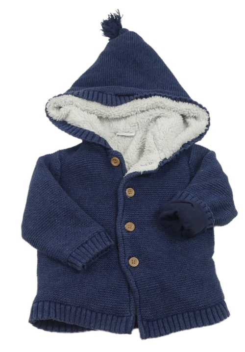 Tmavomodrý melírovaný prepínaci zateplený sveter s kapucňou F&F