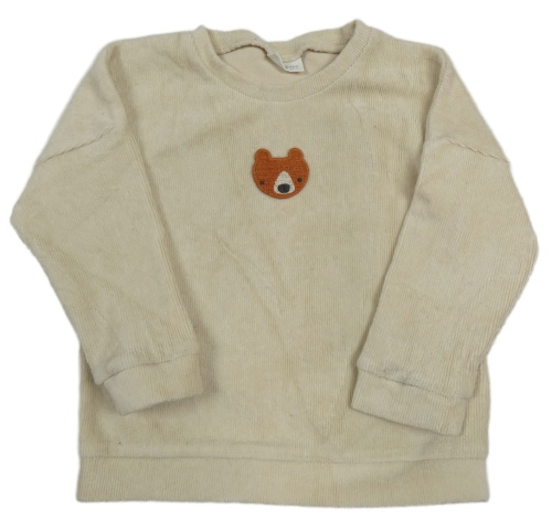 Béžová zamatová rebrovaná mikina s medvedíkom Next