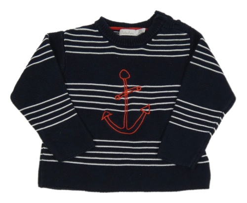 Tmavomodro-biely sveter s kotvou a pruhmi