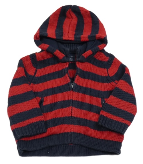 Tmavomodro-červený pruhovaný prepínaci sveter s kapucňou GAP