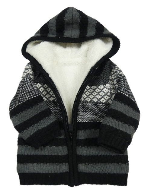 Čierno-sivo-biely pruhovaný prepínaci zateplený sveter s kapucňou Nutmeg