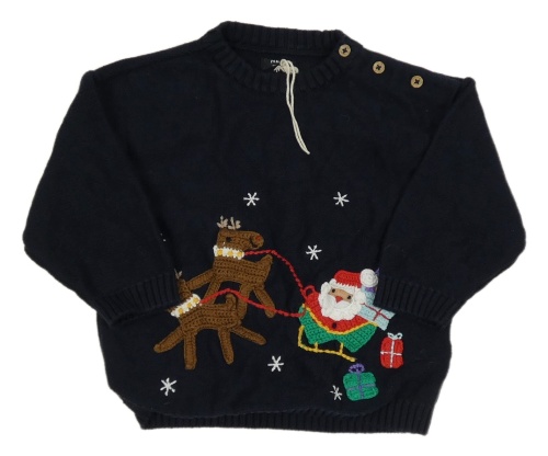 Tmavomodrý sveter so sobmi a Santou Next