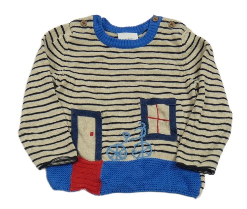 Béžovo-čierno-modrý pruhovaný sveter s bicyklom Next