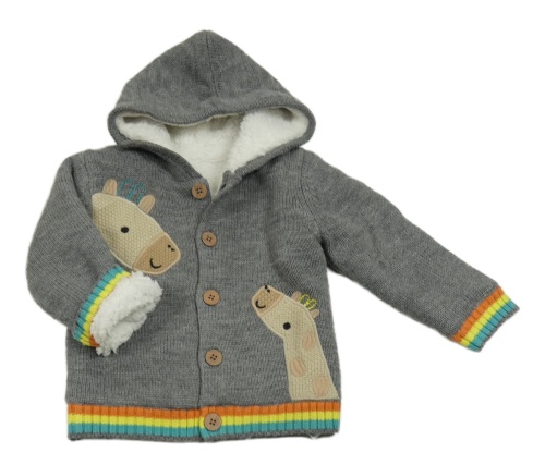 Sivý zateplený prepínaci sveter s žirafami a kapucňou Nutmeg