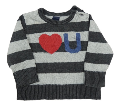 Tmavomodro-sivý pruhovaný sveter s nápisom GAP