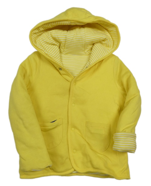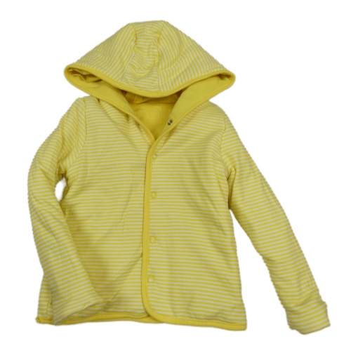 Žlto-biela pruhovaná prepínaci zateplená obojstranná mikina s kapucňou Lupilu