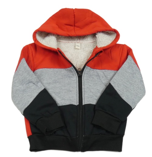 Červeno-sivo-čierna zateplená prepínaci mikina s kapucňou