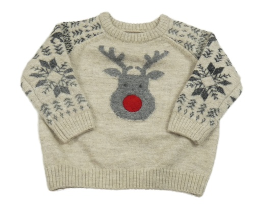 Béžový melírovaný sveter so sobom a vzorom St. Bernard