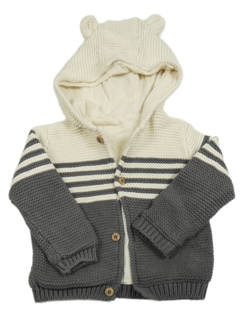 Smetanovo-tmavosivý pruhovaný prepínaci sveter s kapucňou M&S