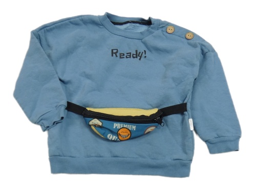 Modrá mikina s nápisom a ledvinkou