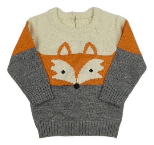 Smetanovo-oranžovo-sivý melírovaný pletený sveter s líškou