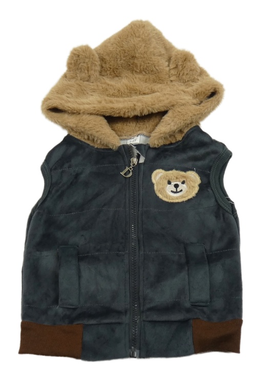 Sivo-béžová plyšová vesta s kapucňou