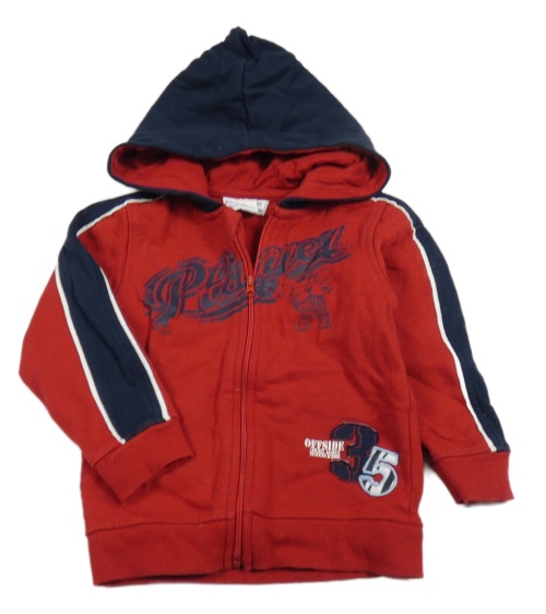 Červeno-tmavomodrá prepínaci mikina s nápisom a kapucňou Blue Seven