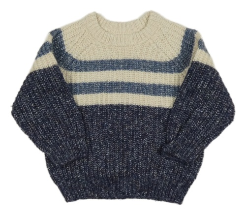 Béžovo-tmavomodrý vlnený sveter s pruhmi V by Very
