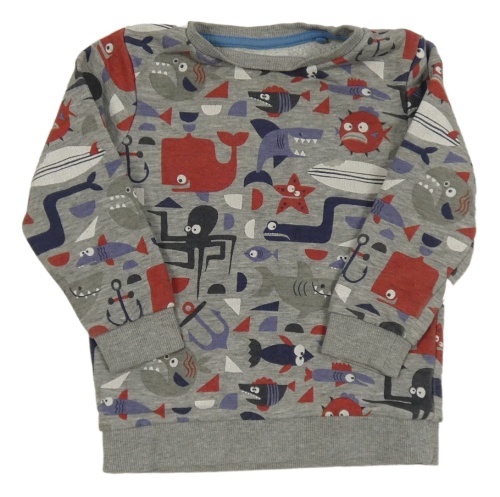 Sivá melírovaná mikina s mořskými živočichy Tu