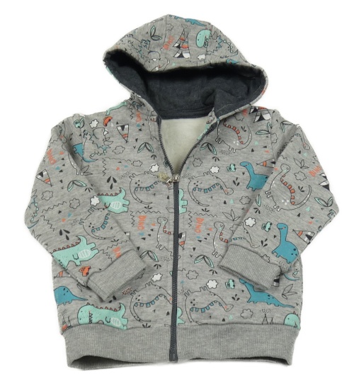 Sivá melírovaná prepínaci mikina s dinosaurami a kapucňou