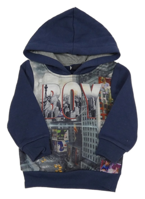 Tmavomodrá tepláková mikina s potiskem města a vreckom a kapucňou HOPE STAR
