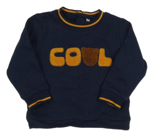 Tmavomodrá mikina s nápisom a medvěďom