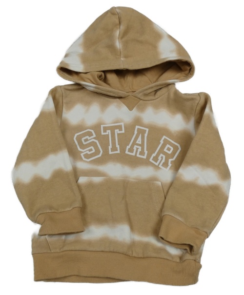 Hnedo-biela batikovaná mikina s nápisom a vreckom a kapucňou