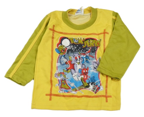 Tmavožluto-olivová mikina s Tomem a Jerrym a pruhom