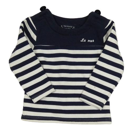 Tmavomodro-biela mikina s pruhmi a nápisom