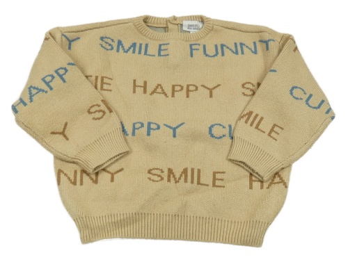 Béžový oversize sveter s nápismi CUDDLES AND SMILES
