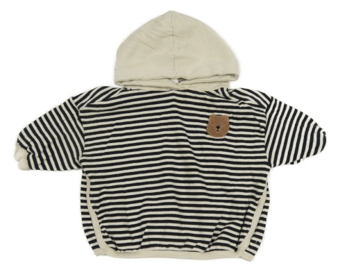 Čierno-béžová pruhovaná tepláková oversize vesta s medvedíkom a kapucí zn Next