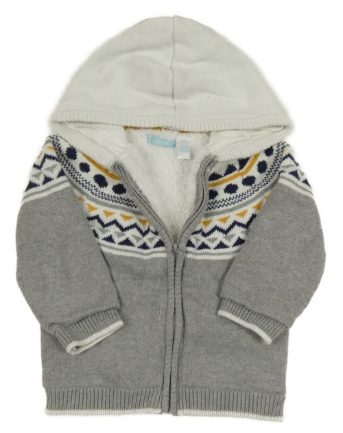 Bielo-sivo-tmavomodro-horčicový vzorovaný prepínaci zateplený sveter s kapucňou Obaibi