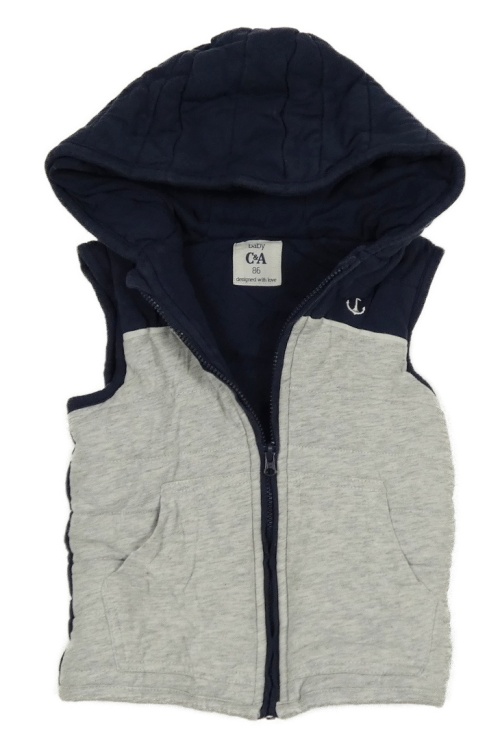 Sivo-tmavomodrá tepláková zateplená vesta s kapucňou C&A