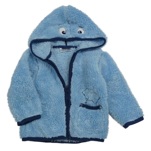 Svetlomodrá chlpatá prepínaci mikina s výšivkou a kapucňou Ergee