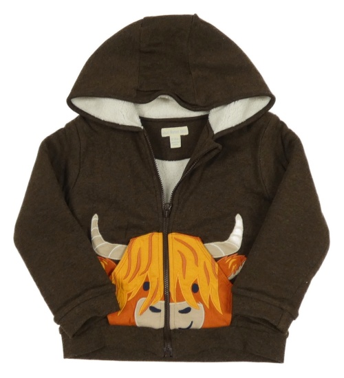 Hnedá prepínaci zateplená mikina s býkem a kapucňou Jojo Maman Bébé