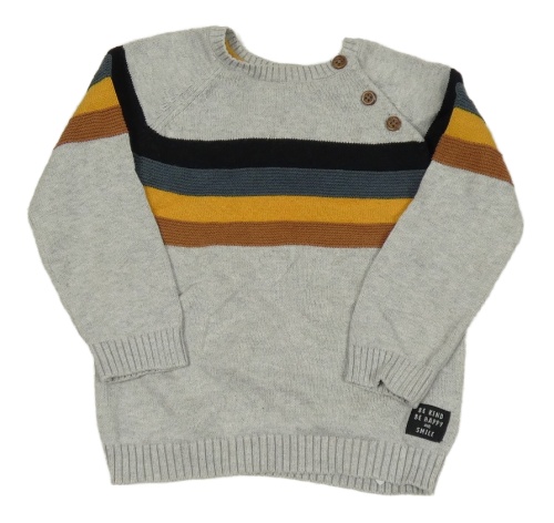 Svetlosivý melírovaný sveter s pruhmi a nášivkou F&F