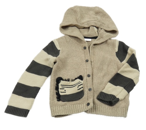 Béžovo-pruhovaný prepínaci sveter so zebrou a kapucňou Next