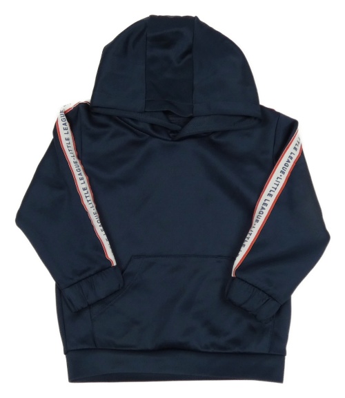 Tmavomodrá športová mikina s prúžkami a kapucňou