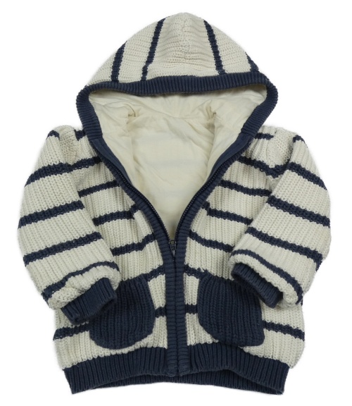 Smetanovo-tmavomodrý pruhovaný rebrovaný prepínaci podšitý sveter s kapucňou George