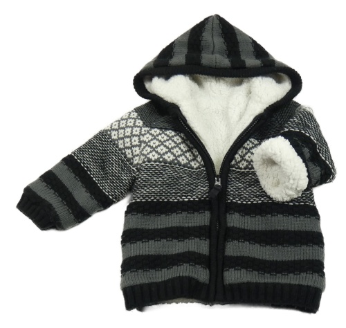 Sivo-čero-biely vzorovaný zateplený prepínaci sveter s kapucňou Nutmeg
