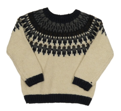 Béžovo-tmavomodro-sivý sveter so vzorom F&F