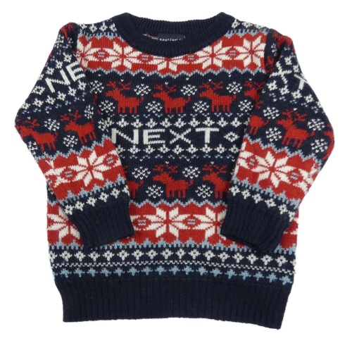 Tmavomodro-červeno-biely vzorovaný vlnený sveter Next