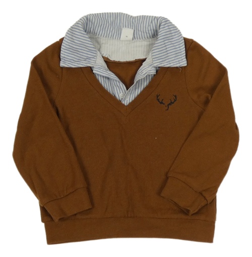 Hnedá rebrovaná mikina s parohy a všitou košilí SHEIN