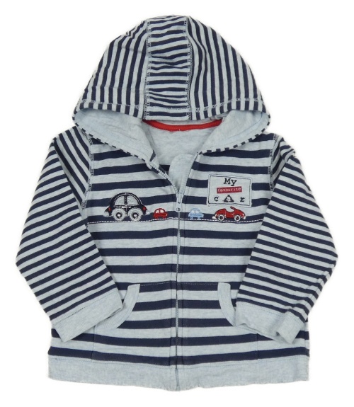 Tmavomodro-svetlomodrá pruhovaná prepínaci mikina s autami a kapucňou George